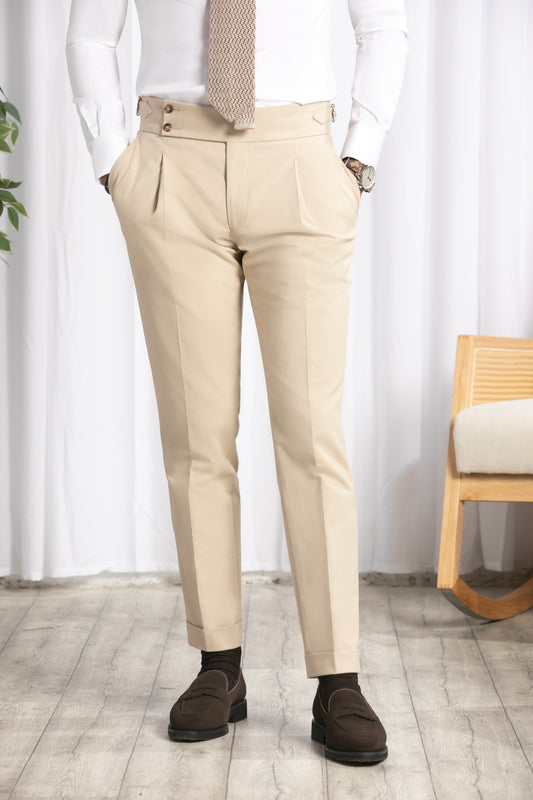 Beige Trousers High Waisted with adjusters Duca Visconti