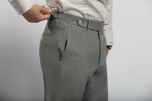 Grey Trousers High Waisted with adjusters Vitale Barberis tropical Wool
