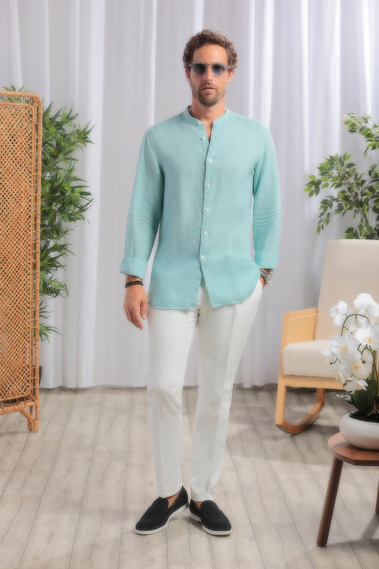 Mao Linen Shirt │ Aqua