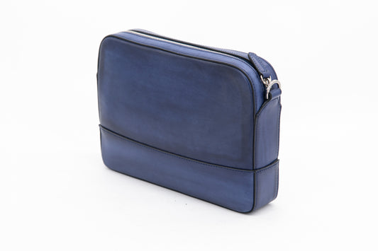 Leather Business Bag│ Navy Grain