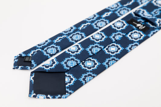 TIE - Navy & Sky Blue Flowers