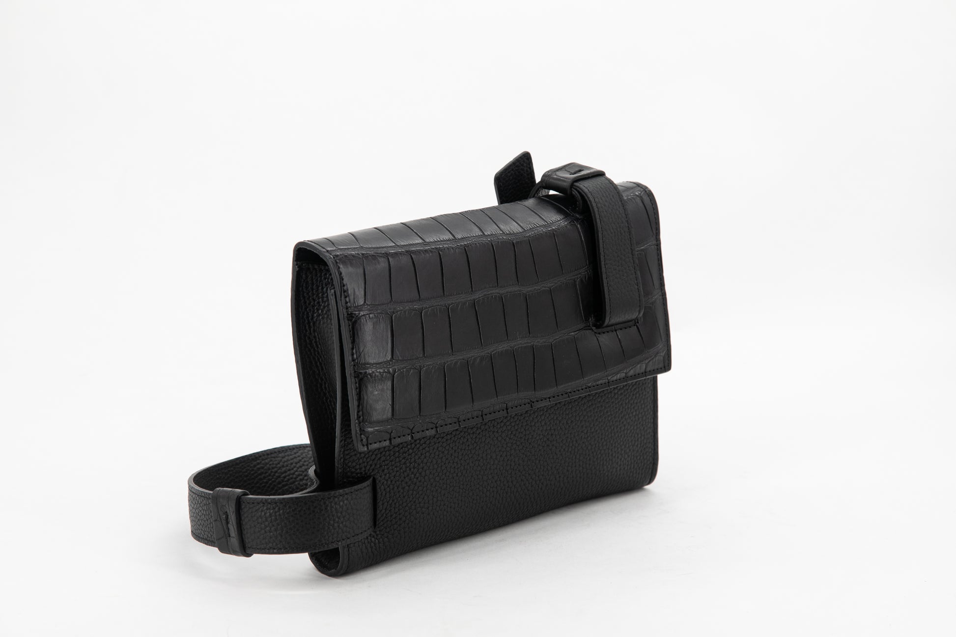 Alligator & Calf Leather Shoulder Clutch │ Black