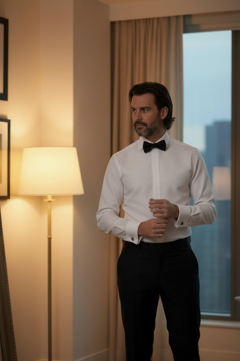 Tuxedo Shirt, Hidden Buttons, White Twill